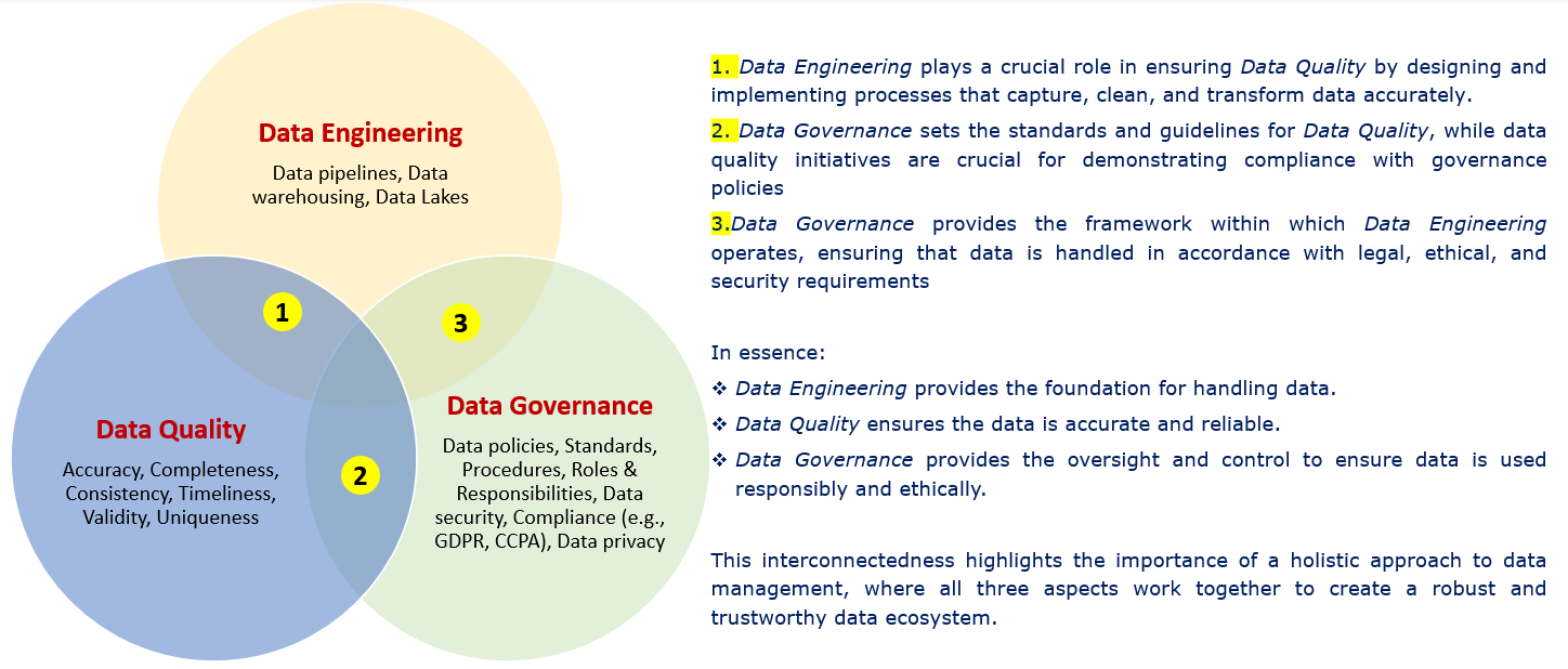 In the rapidly evolving landscape of Artificial Intelligence (AI) and Generative AI (GenAI), data has emerged as the most critical asset driving technological innovation. While AI promises transformative capabilities - from intelligent automation to groundbreaking insights - its true potential is intrinsically linked to the Engineering, Quality and Governance of underlying data ecosystems.